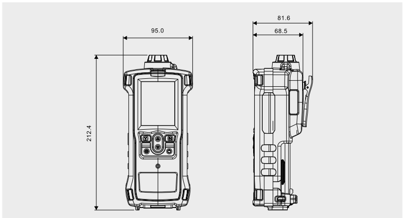 高清大彩屏,仿真圖標顯示實時濃度、時間、溫度、濕度、通信、打印、電量、報警燈等狀態(tài);