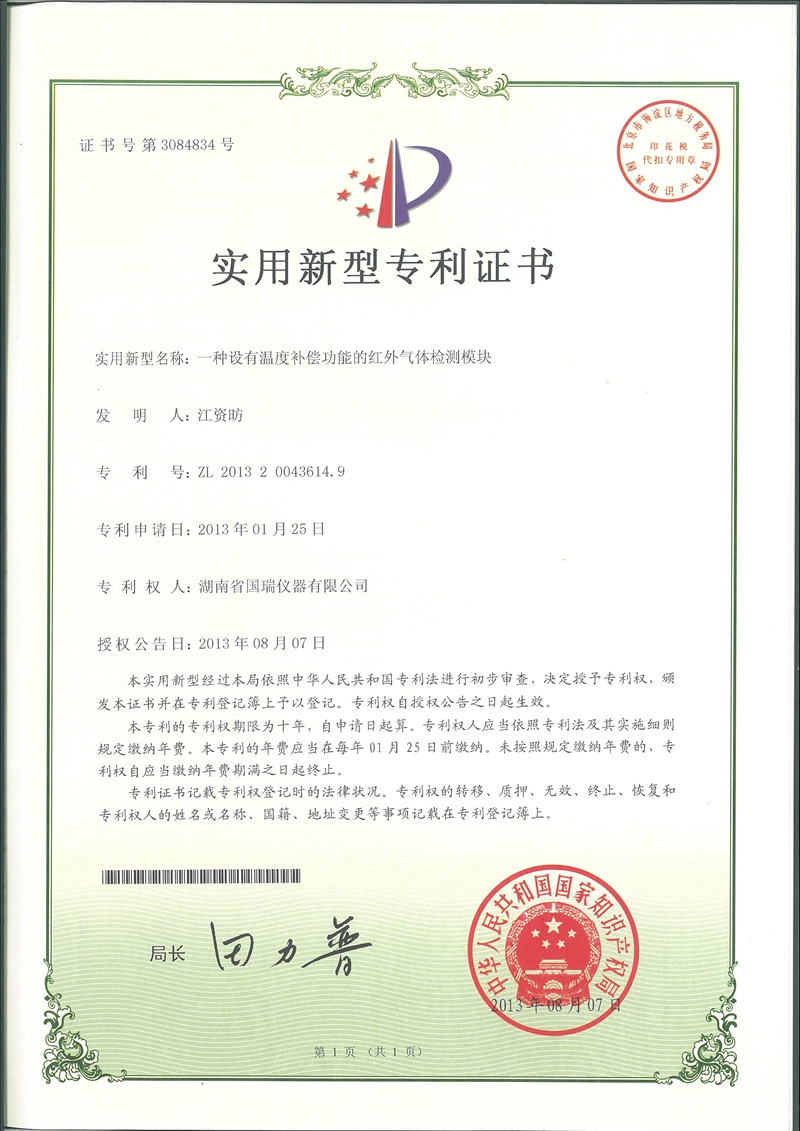 一種設(shè)有溫度補償功能的紅外氣體檢測模塊專利
