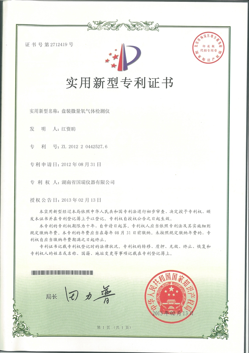 盤裝微量氧氣氣體檢測儀