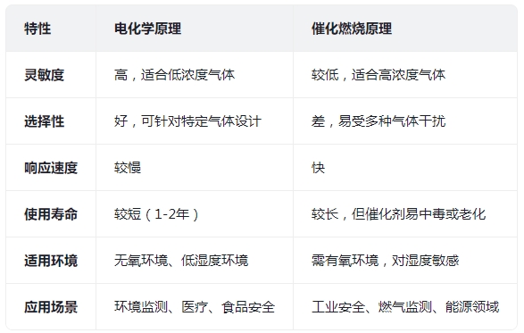 電化學原理和催化燃燒原理在氣體檢測中的應用各有優(yōu)勢和局限性,其使用頻率取決于具體的應用場景和需求。以下是兩者的對比分析:
