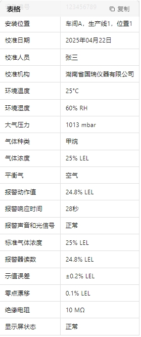 - 氣體種類:記錄使用的標(biāo)準(zhǔn)氣體種類(如甲烷、一氧化碳等)。